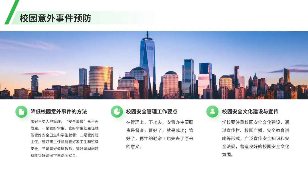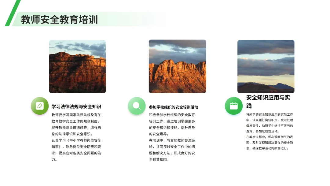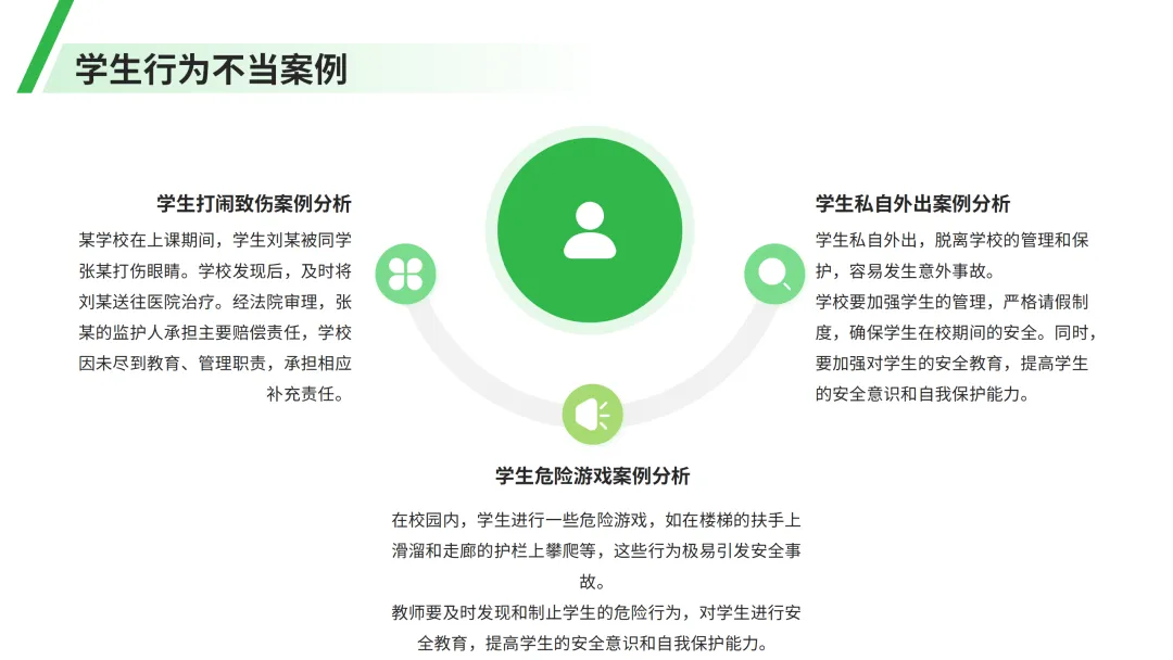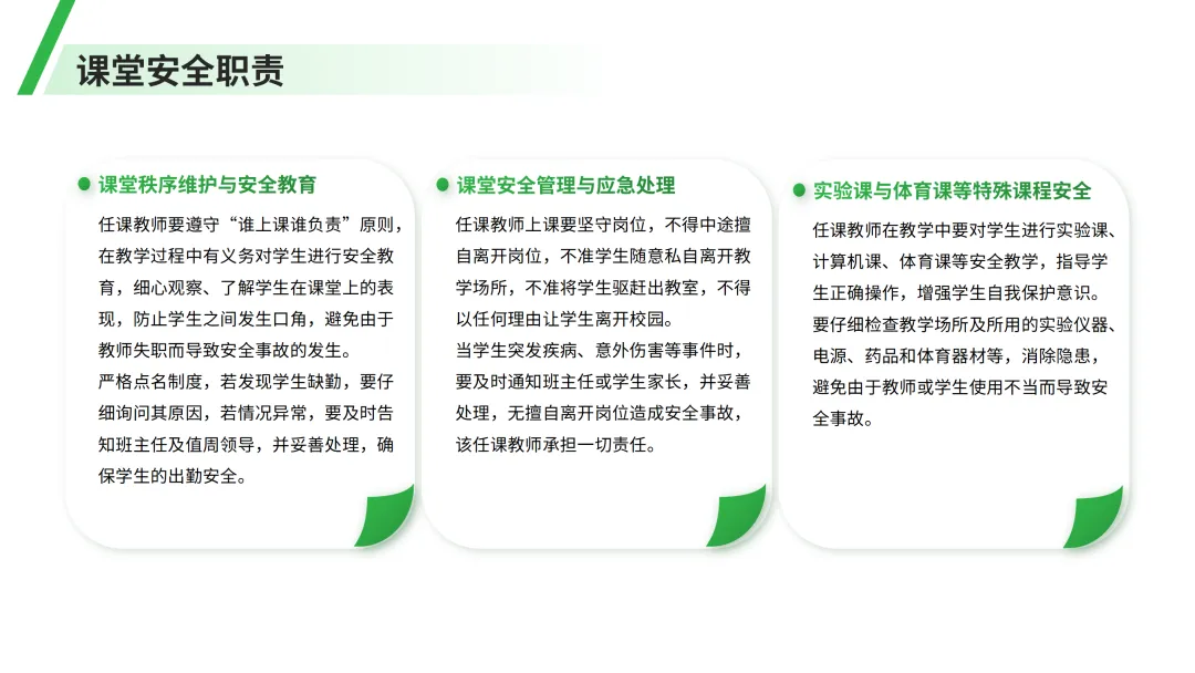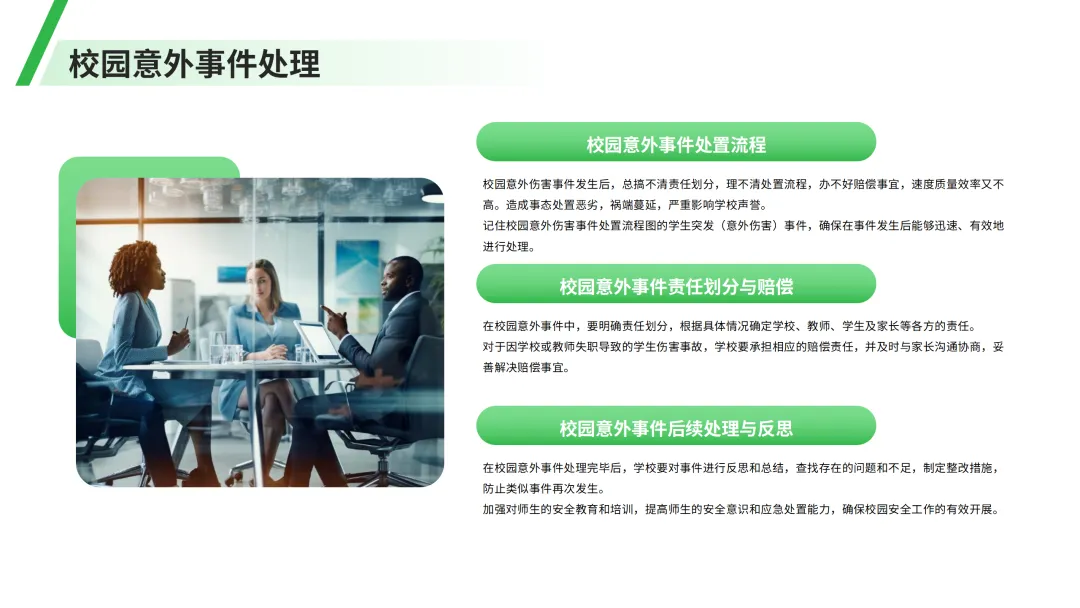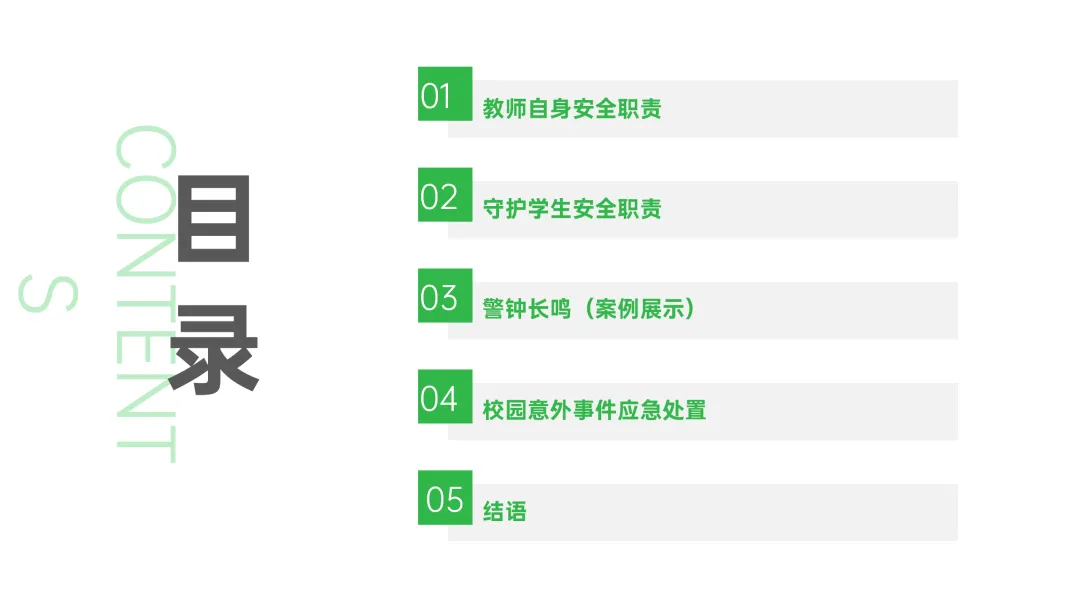 接下来,我将从以下几个方面为大家进行详细的讲解。首先,我们来了解教师自身的安全职责,这是保障校园安全的基础。其次,我们要明确守护学生安全的职责,这是我们作为教师的核心任务之一。然后,通过一些实际案例的展示,让大家深刻认识到校园安全问题的严重性和紧迫性。接着,我们会学习校园意外事件的应急处置方法,以便在遇到突发情况时能够迅速、有效地进行处理。最后,我会对本次培训进行总结,并对校园安全工作提出一些展望。