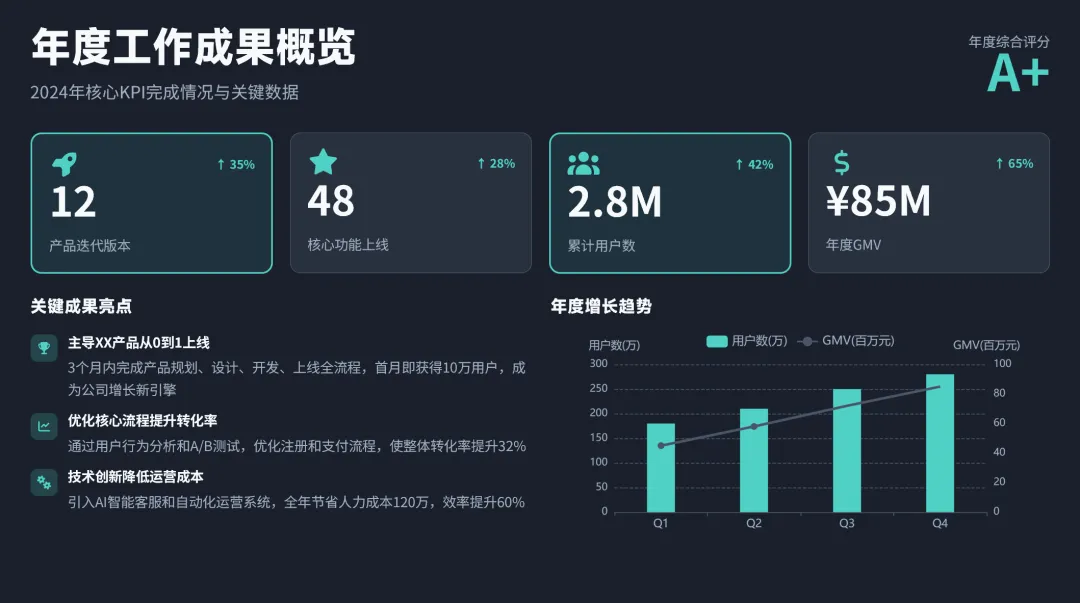 通过上面的案例,大家可以看到,生成的PPT,质量已经相当不错了。具有了设计师质感的审美。