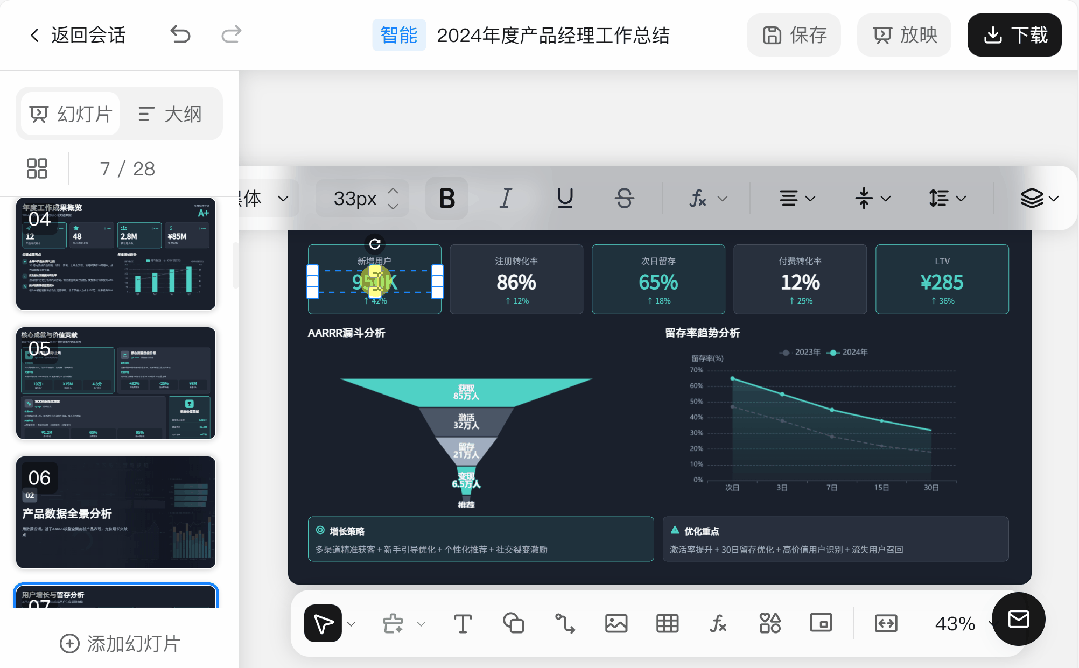 通过Kimi生成的PPT,不仅可以在线编辑修改,还可以下载为PPT格式,使用起来非常方便。