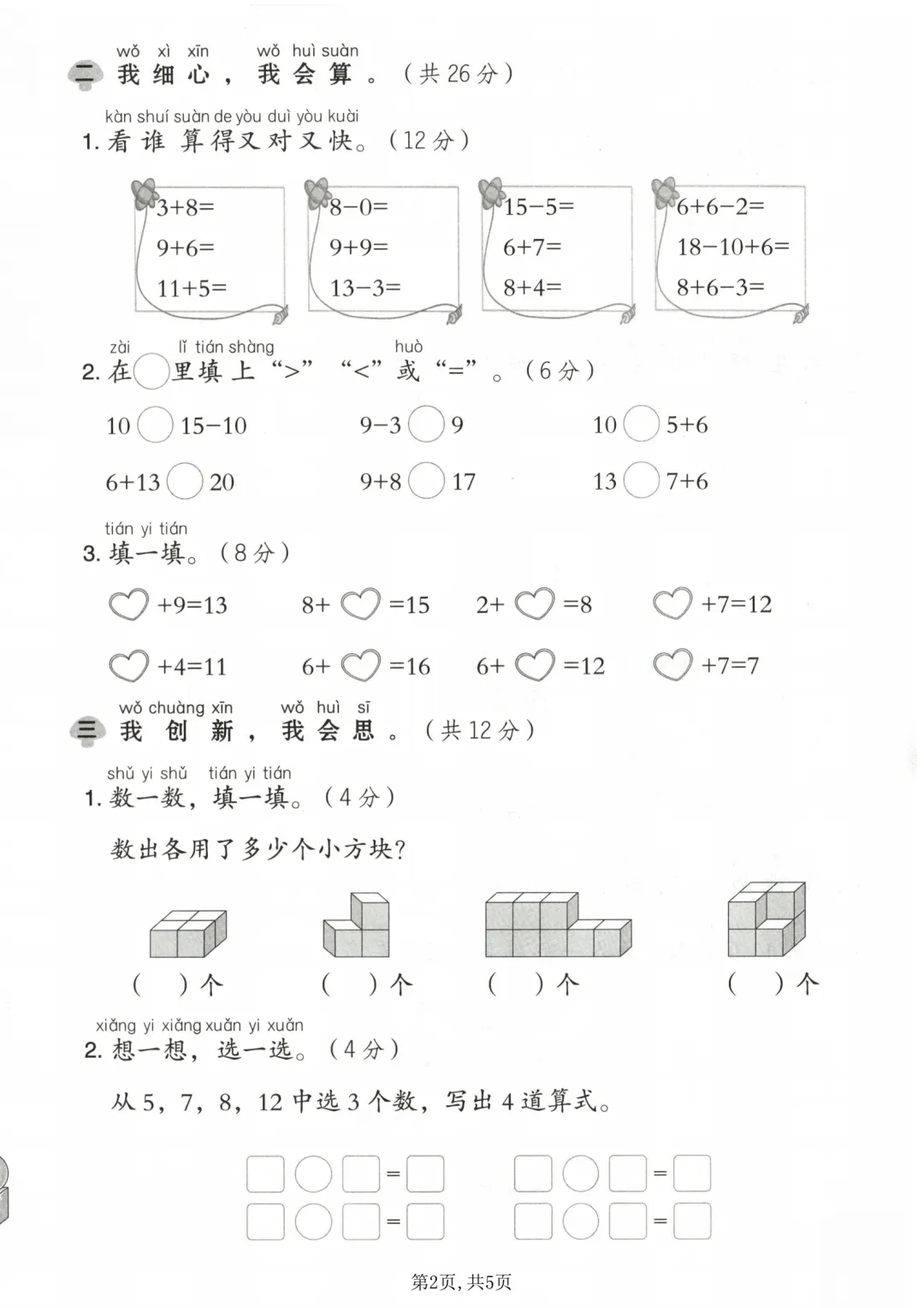二、我细心,我会算(共 26 分)