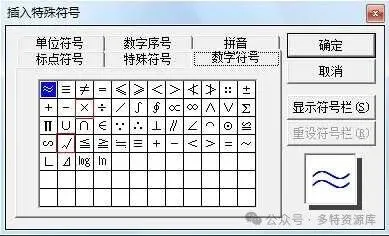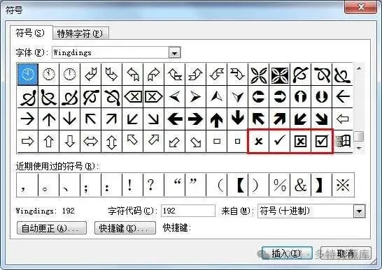 同样打开Word中“菜单栏”-->插入-->特殊符号,在弹出的“插入特殊符号”中单击“数字符号”,在下面你就可以找到想要的“钩钩”和“叉叉”了。(如下图)