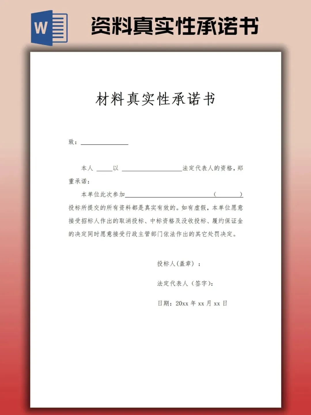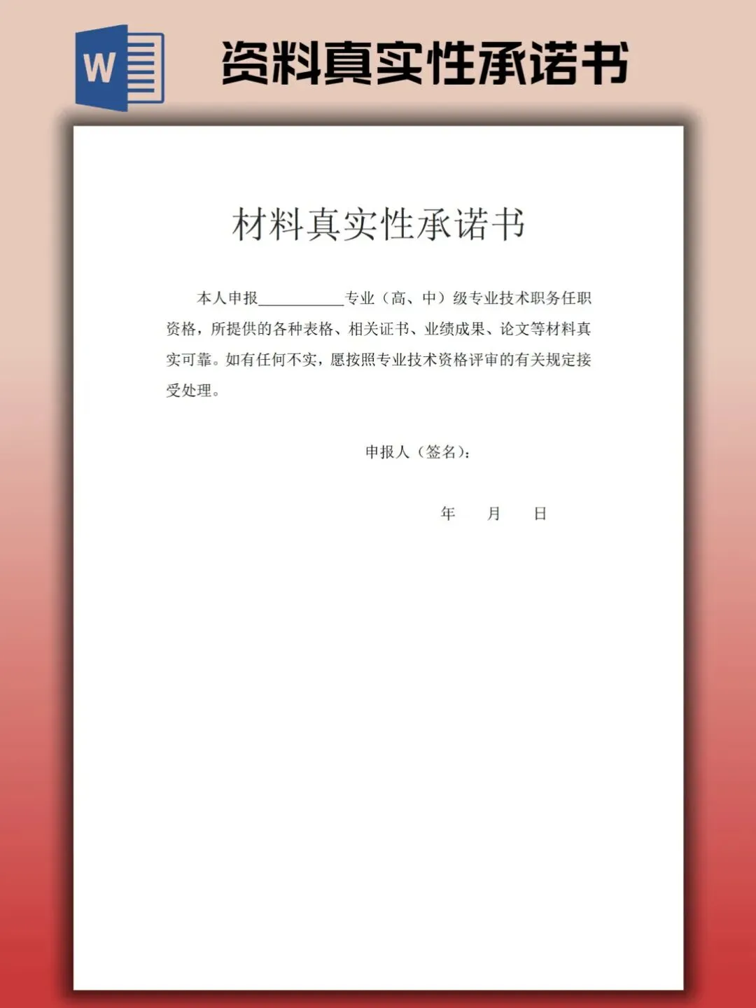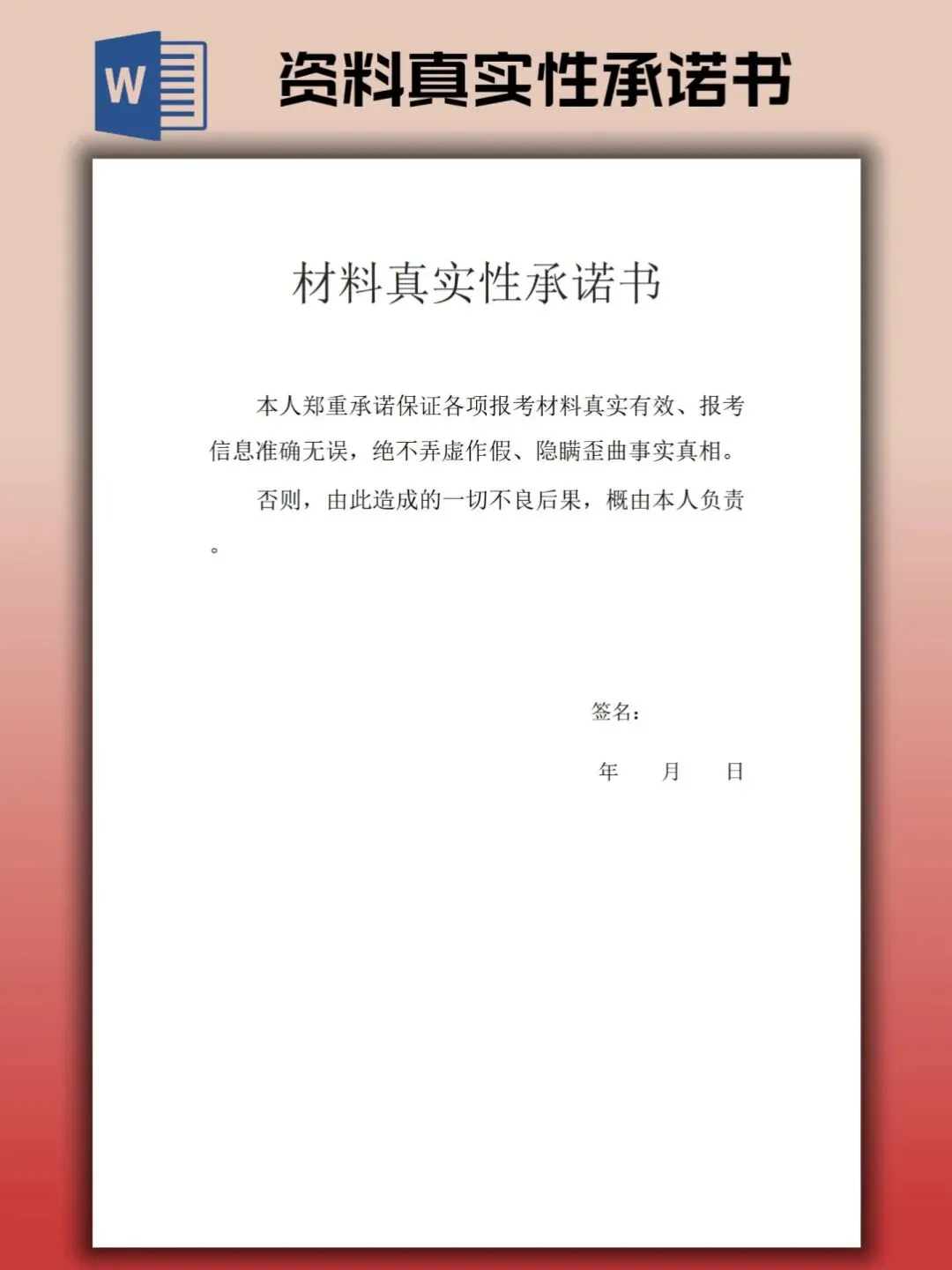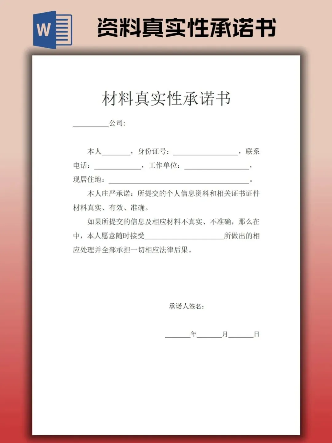 本文内容分享资料真实性承诺书模板