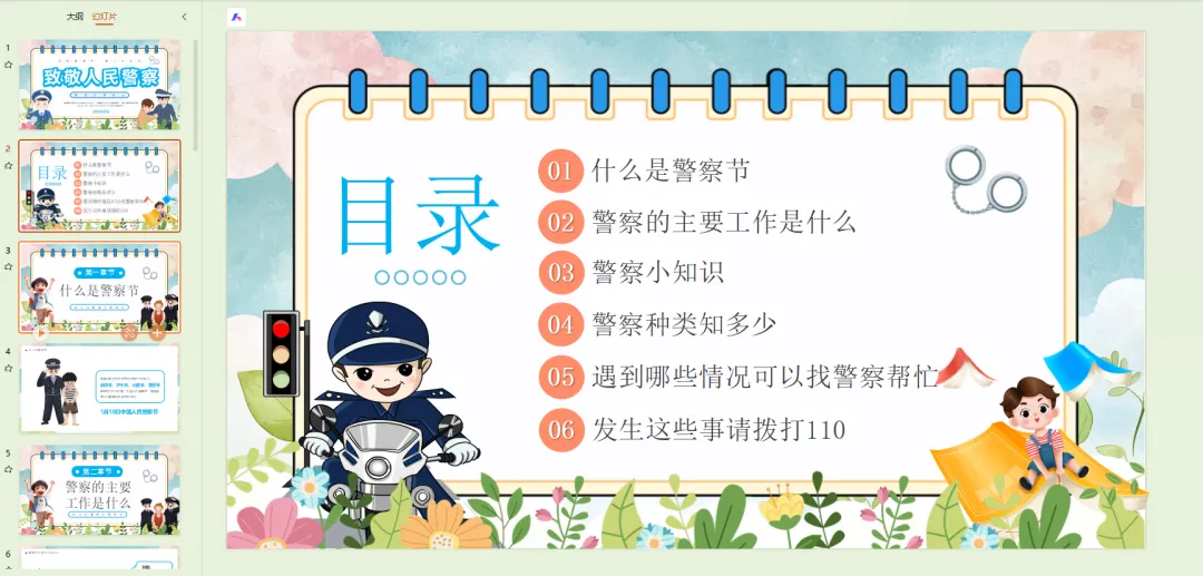 同学们,警察叔叔阿姨用忠诚和担当,为我们筑起了一道安全的防线。他们在风雨中坚守岗位,在危险面前挺身而出,用汗水和辛劳换来了我们的平安生活。希望通过今天的班会,大家能更加了解警察、尊敬警察,同时也学会在遇到困难时正确求助。让我们一起向伟大的人民警察致敬,感谢他们的默默守护!