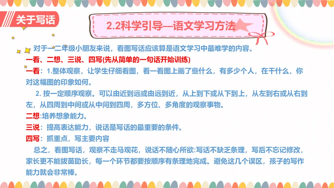 总之,看图写话,观察不走马观花,说话不随心所欲:写话不缺乏条理,写后不忘记修改,家长更不能拔苗助长,每一个环节都要按顺序有条理地完成。避免这几个误区,孩子的写作能力就会非常棒。