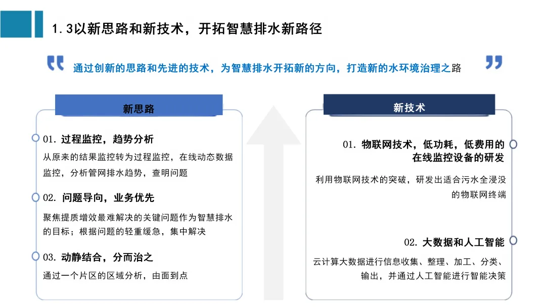 方案首先通过研发低功耗、低费用的在线监控设备,实现对污水全浸没环境的实时监测,确保数据的准确性和及时性。同时,利用大数据和人工智能技术,对收集到的数据进行深度分析和智能决策,实现从结果监控到过程监控的转变,提高问题发现的效率和精准度。