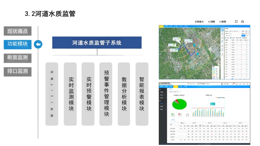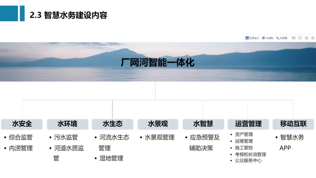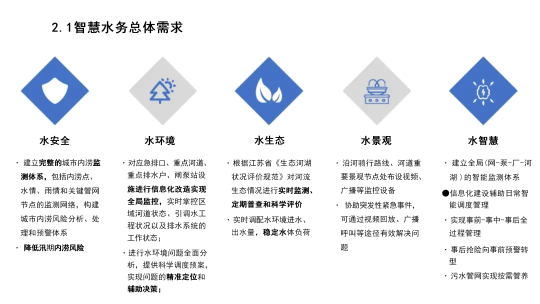 在具体实施上,方案聚焦提质增效的核心目标,通过信息化改造应急排口、重点河道、排水户及闸泵站设施,实现全局监控和实时掌控。建立智能监测体系,辅助日常智能调度管理,实现事前预警、事中控制和事后分析的全过程管理。此外,方案还注重水环境的综合治理,包括河道水质监管、内涝管理、水景观管理和应急预警等多个方面,确保城市水环境的整体提升。