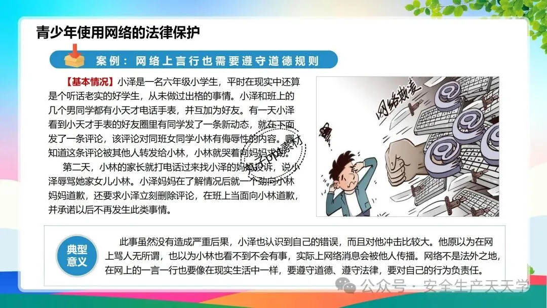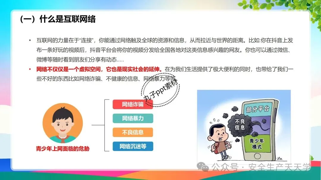 网络不仅仅是一个虚拟空间,它也是现实社会的延伸。在为我们生活提供了极大便利的同时,也带给了我们一些不好的东西比如网络诈骗、不健康的信息、网络暴力等等。