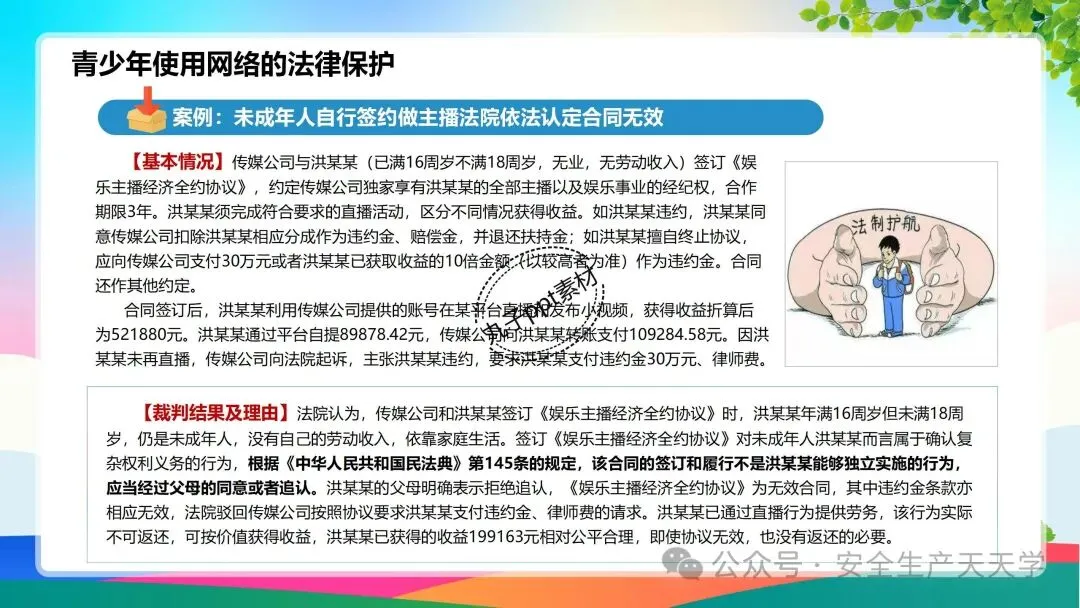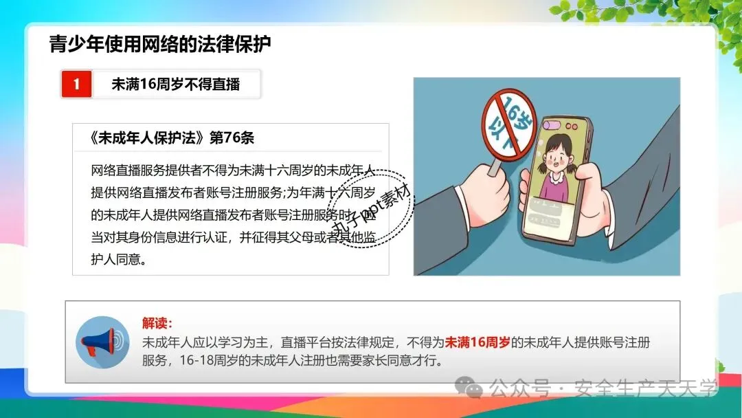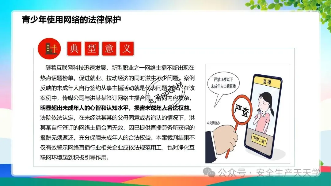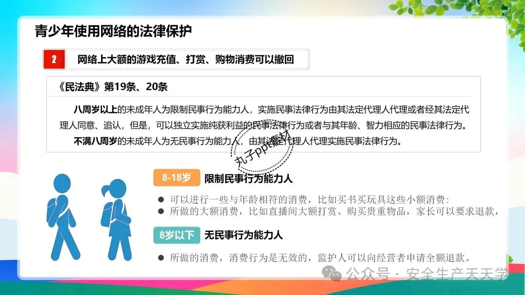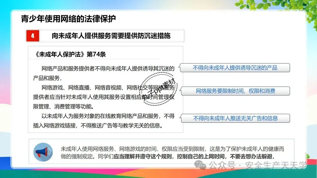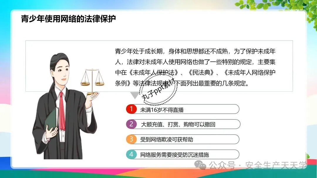 青少年处于成长期,身体和思想都还不成熟,为了保护未成年人,法律对未成年人使用网络也做了一些特别的规定,主要集中在《未成年人保护法》、《民法典》、《未成年人网络保护条例》等,