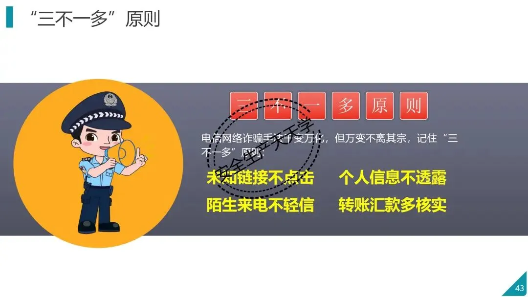 鉴于此,为了帮助大家全面了解电信诈骗的常见类型、作案手法,掌握实用的识别技巧和防范方法,提高自我保护意识和能力,有效避免落入诈骗陷阱,我们精心制作了这份预防电信诈骗 PPT 课件。希望通过本次学习,能让每一位参与者都成为防范电信诈骗的 “明白人”,共同构筑起抵御电信诈骗的坚固防线。