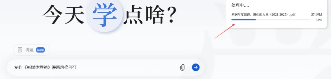 - 也可上传现成教学文件,我这里上传刘润年度演讲:进化的力量资料作为素材;