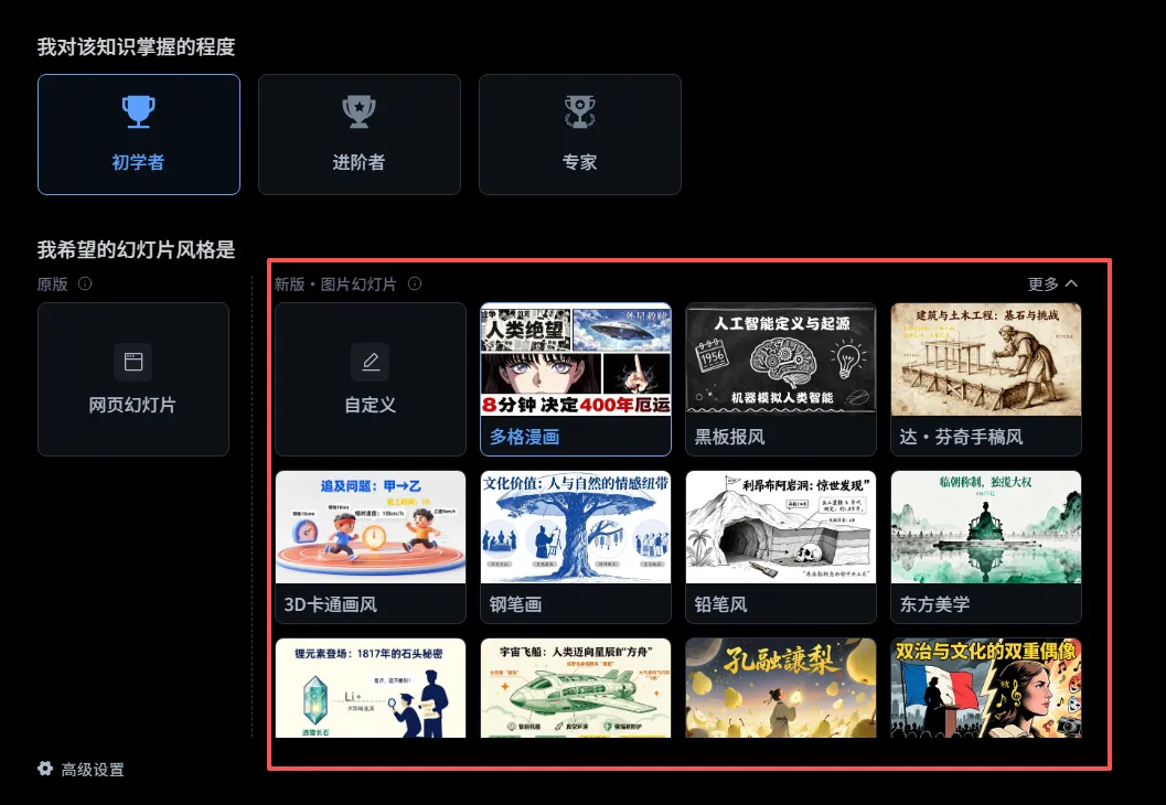 传统文字课件枯燥,学生易走神。该功能对标海外爆火的Nano Banana 2,可生成漫画风课件,20多种风格可选,还能自动配语音讲解,轻松抓住学生注意力!