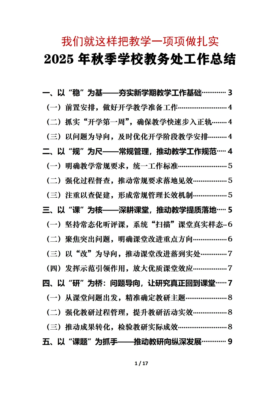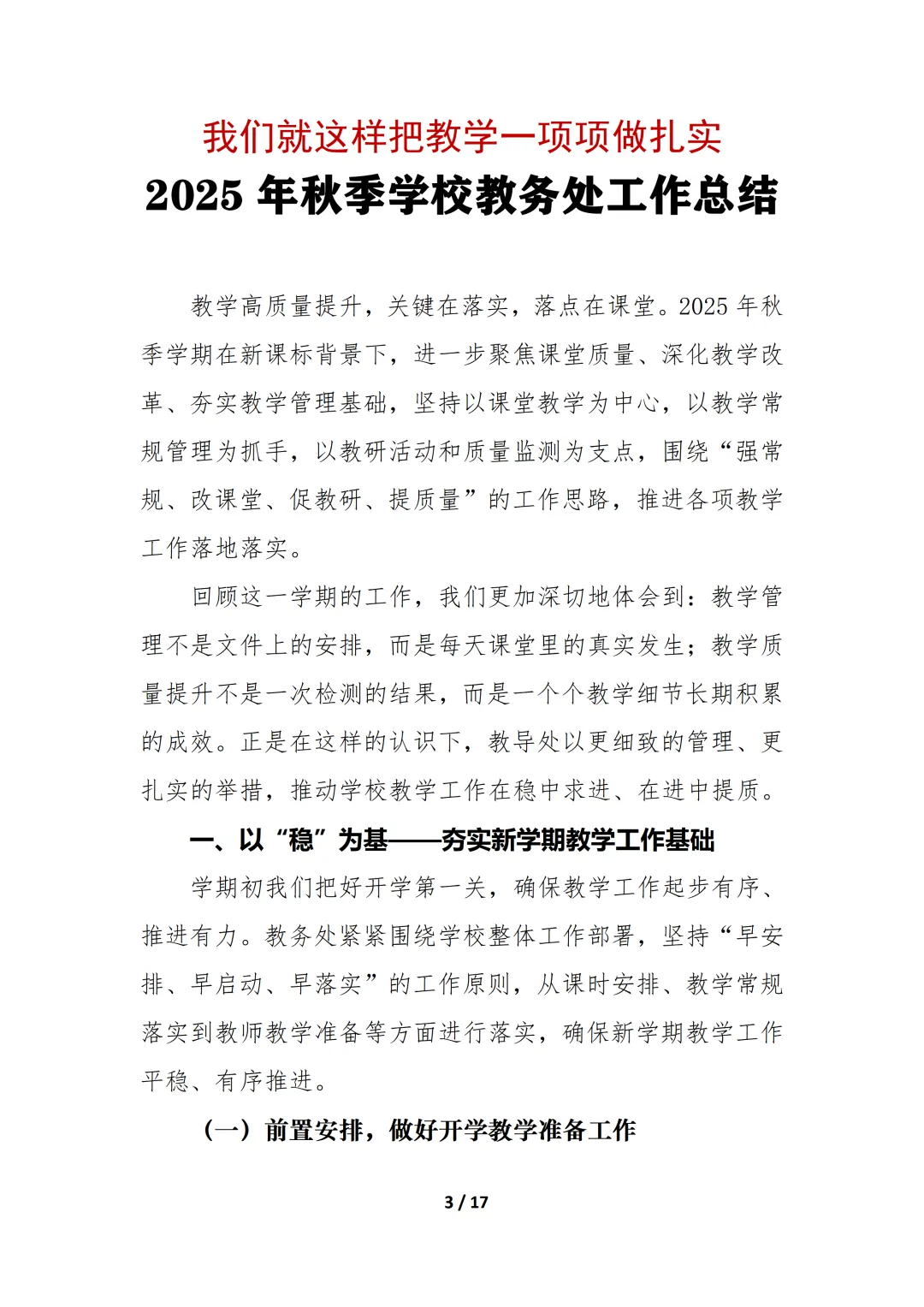 【教务处工作总结PPT】2025年秋季学期学校教务处工作总结:我们就这样把教学一项项做扎实