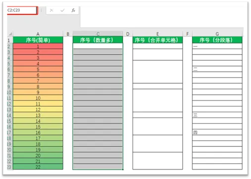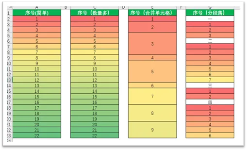 本文针对EXCEL中常遇到的4种情况,说一下快速填充序列号的方法。