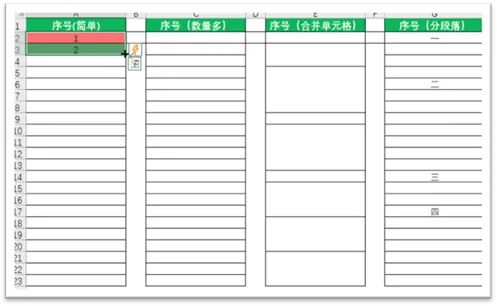 对于序号数量较多,下拉菜单也得花费不少时间,可以运用公式实现一键填充。