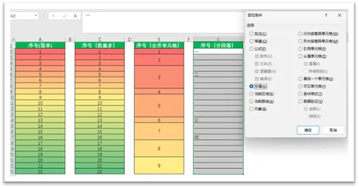 对于分段落、分层次填充序列的,可以先选定需要填充序列的单元格,按下“Ctrl+G”,在弹出来的“定位”对话框选择“定位条件”,然后在“定位条件”中选择“空值”,点击“确定”。