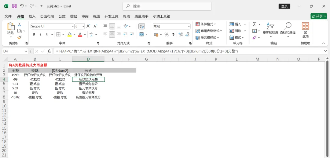 - 若 A4 是负数(比如 A4=-123),这里会生成 “负” 字;