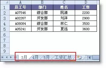 如下图所示工资表中,含有多个月份的数据。要求在汇总表中把所有月份的数据汇总到一起。