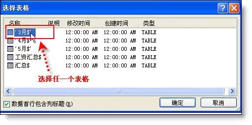 3、选取任一个表格名称