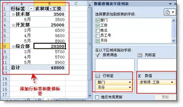 7、连接完成!下面就是对数据透视表的基本操作,添加行、列标标签和数据标签。