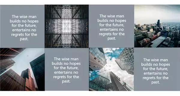 卡片式排版也是非常常见的一种,大家可以去网上看一些付费模板,几乎都会用到这个技巧,当PPT中既要有文字又要有图片的时候,卡片式排版是最好的选择,如果是有时间顺序的事件或是主次层次的话题,我们还能通过调整卡片的大小和位置来营造层次感~