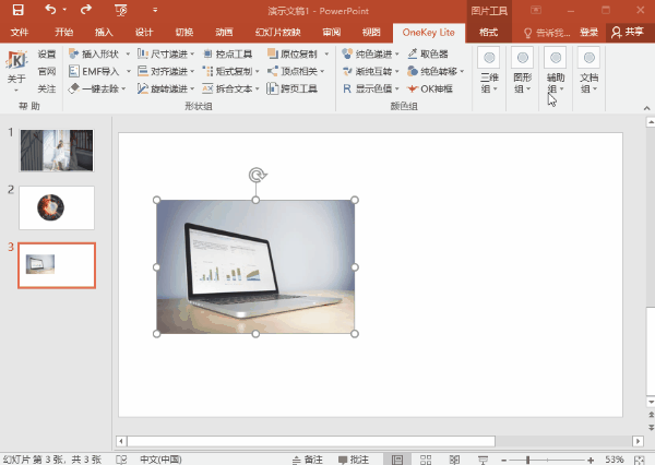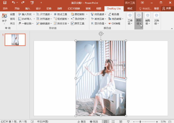 如果电脑里有OneKey插件的小伙伴,那就轻松很多了,有这个插件的话,可以很轻松地给图片做出高大上的效果~