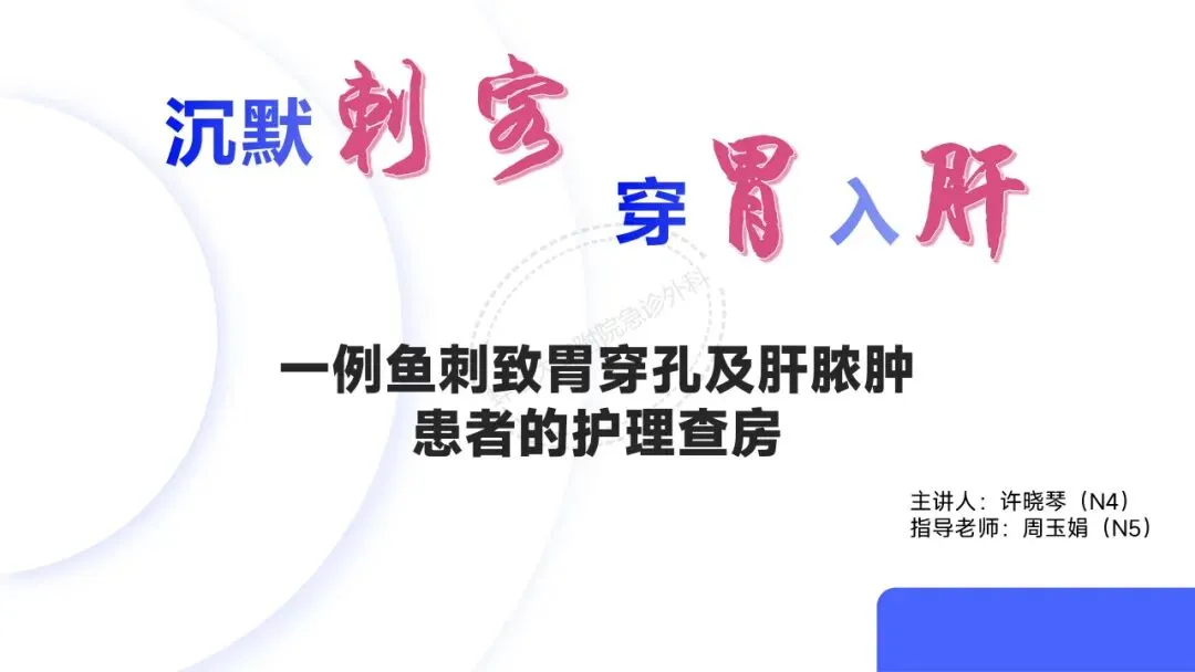 【PPT】一例鱼刺致胃穿孔及肝脓肿患者的护理查房