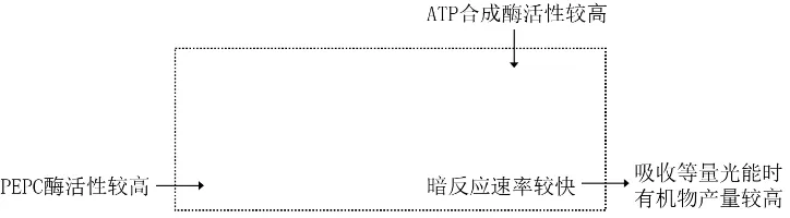 (4)进一步研究发现,突变体叶肉细胞中PEPC酶与叶绿体中ATP合成酶活性显著高于野生型。PEPC酶的功能如图2所示。综合上述信息,以野生型植株为对照,概述突变体光能转化率更高的原因(在方框中以文字和箭头的形式作答)。