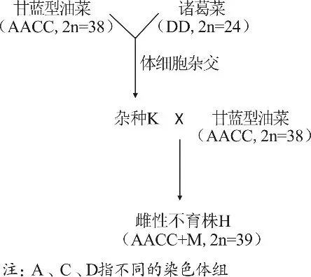 6.为改良甘蓝型油菜的遗传特性,获取新的种质资源,研究人员按照右图育种方式获得了雌性不育株H。下列分析不正确的是