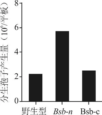 B.Bsb基因可调控分生孢子的产生量使其降低