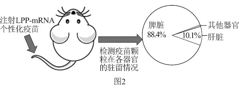 (3)LPP-mRNA个性化疫苗在小鼠体内器官驻留情况如图2,请解释模型鼠接种LPP-mRNA个性化疫苗后,肺部肿瘤结节数量显著减少的原因。