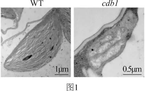 (2)与野生型相比,cdb1中叶绿体较小,结构异常,没有规则完整的类囊体