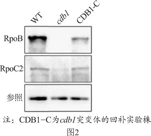 ②合理。cdb1中PEP的组成成分RpoB和RpoC2几乎完全缺失,回补组二者部分恢复