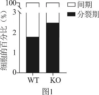 与WT组相比,KO组中期细胞占比高,后期细胞占比低