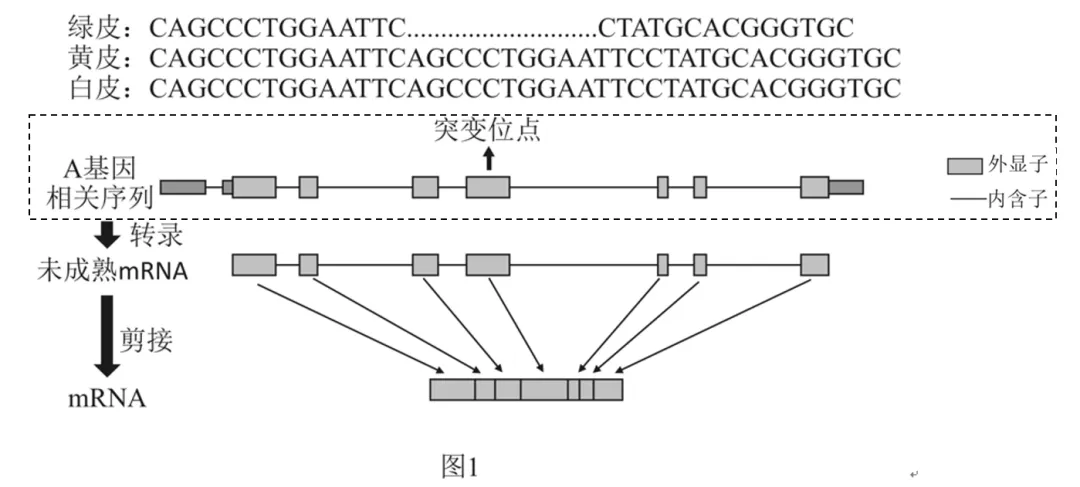 (2)果皮颜色与4号染色体存在相关性。进一步研究结果如图1,该染色体上A基因 的_________区域发生_________,导致了基因突变,使得氨基酸_________发生变化,相应蛋白质的空间结构改变。由此推测A基因可能为控制甜瓜果皮颜色的候选基因。