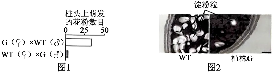 (4)不支持。植株G花粉中蔗糖含量明显高于WT,说明不是蔗糖运输障碍导致的