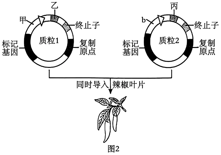 基因表达载体应该有的结构有启动子、终止子、目的基因、标记基因等;题意显示,P酶催化合成SA,正常辣椒叶片几乎不表达H蛋白,若发生感染,4天后叶片中的H蛋白含量显著升高,H蛋白可能调控P基因表达P酶,为了验证上述推测,需要将H基因转入辣椒叶片,同时需要加入荧光素酶基因以便用于检测,因此,图2质粒上甲、乙、丙处依次应为P基因启动子和目的基因(H基因和荧光素酶基因)。结果显示,与对照组相比,转基因植株荧光强度较高,该结果可推测H基因促进了P基因的表达。