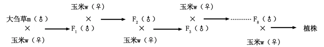 通过多代回交会增加后代含有玉米基因的数量,而逐渐减少后代中大刍草m的基因数目,因而通过多代回交并结合后代的表现型,通过大量的观察找到大刍草m中的相关基因,即连续回交可大幅降低来自大刍草m的与花粉育性无关的基因比例,缩小候选基因的范围。
