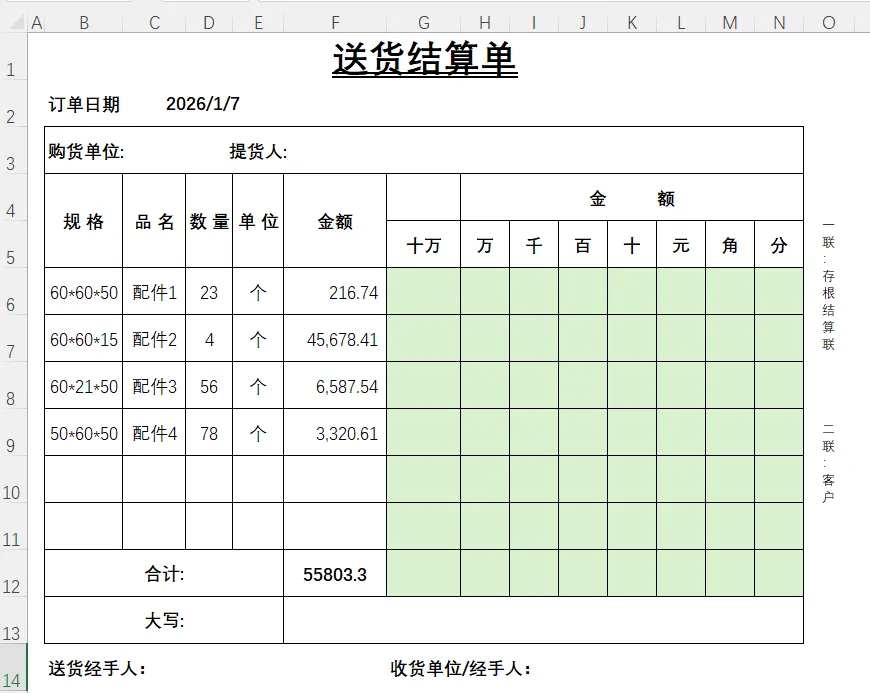 今天我们就通过一张送货结算单的实际案例,教你如何用Excel实现金额自动拆分,让数字填写既规范又高效!