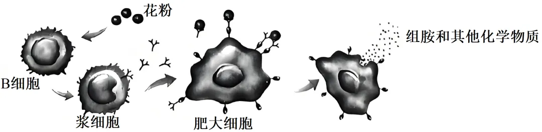 11. 下图为花粉导致机体产生过敏反应的过程,相关叙述错误的是()