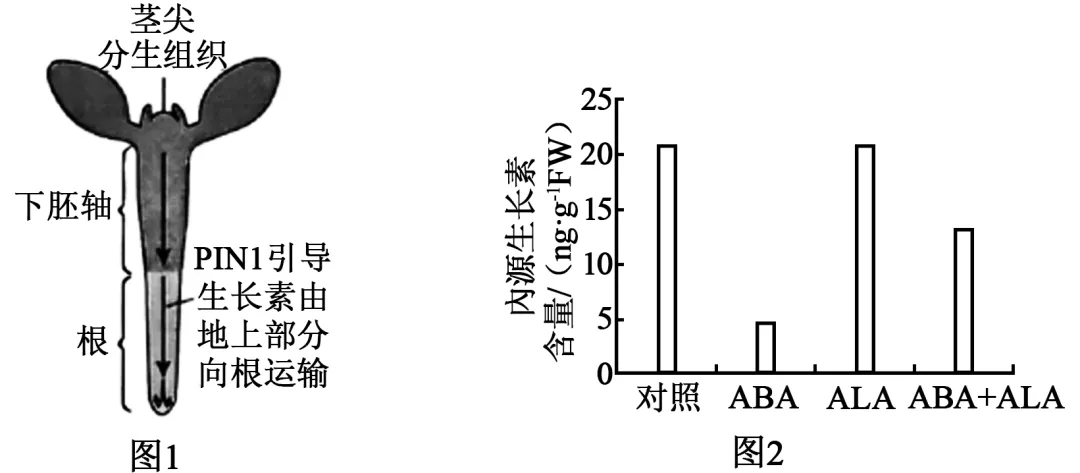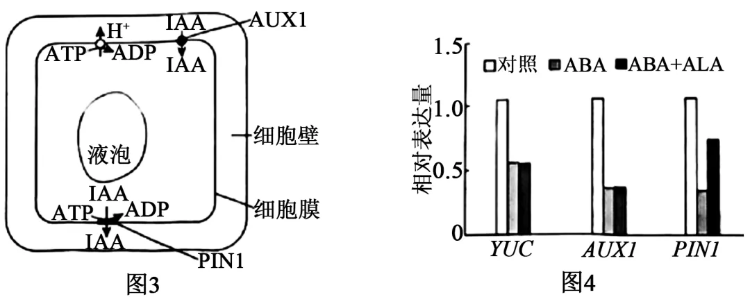 (3)ALA并未缓解ABA诱导的IAA合成下降,仅缓解ABA对PIN1表达的抑制,从而缓解ABA对IAA向根部极性运输的抑制