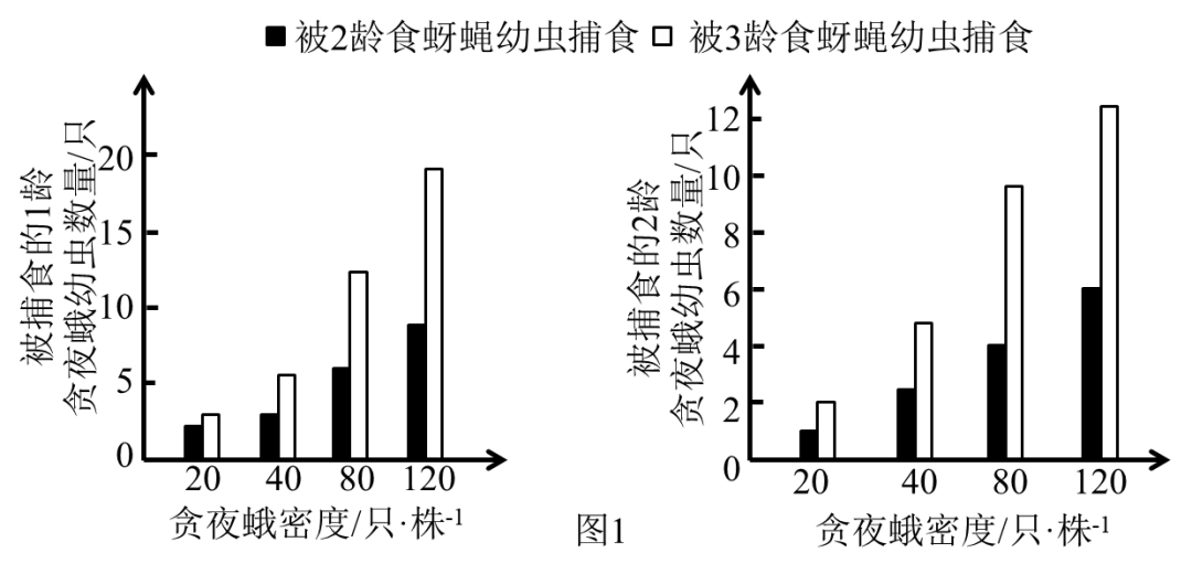 实验结果显示,贪夜蛾幼虫被捕食量与种群密度呈正相关关系。另有实验发现,3龄及以上的贪夜蛾幼虫可反向捕食食蚜蝇所有虫龄幼虫。