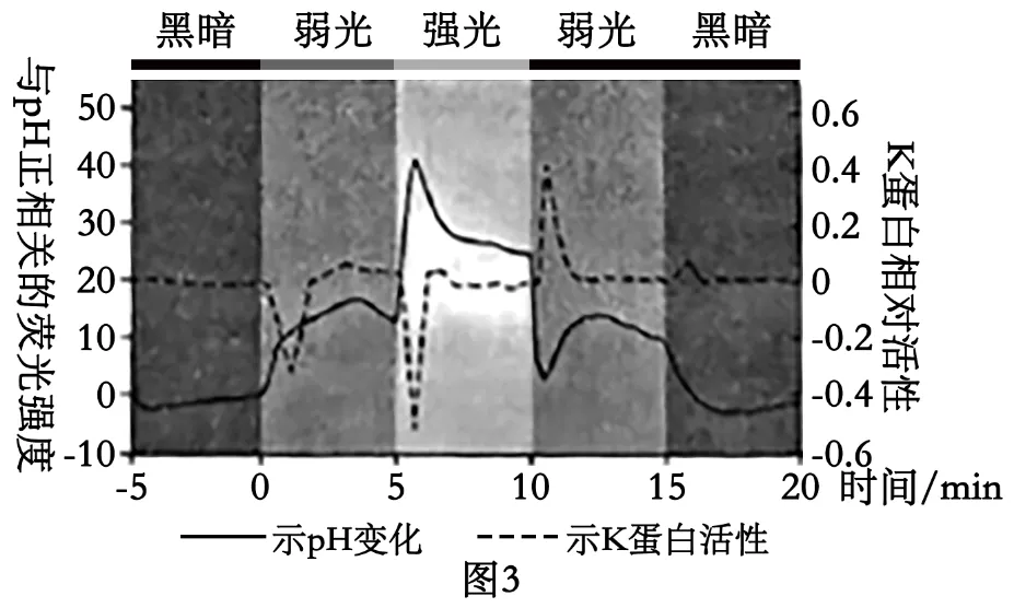 ①根据图3分析可知强光条件下叶绿体基质pH值变化是下降,所以可推测活性的K蛋白跨膜转运H+的方向是由类囊体腔运输到叶绿体基质。