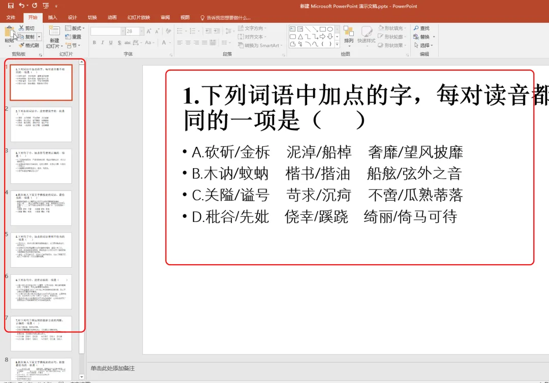 2.3 插入后效果如下,可以看到选择题都按照结构每个选择题插入到了PPT中: