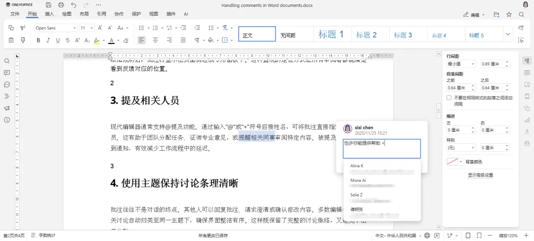 想要实现更清晰、更高效的文档协作?ONLYOFFICE 文档编辑器助您快速掌握批注功能,有效提升协作效率。