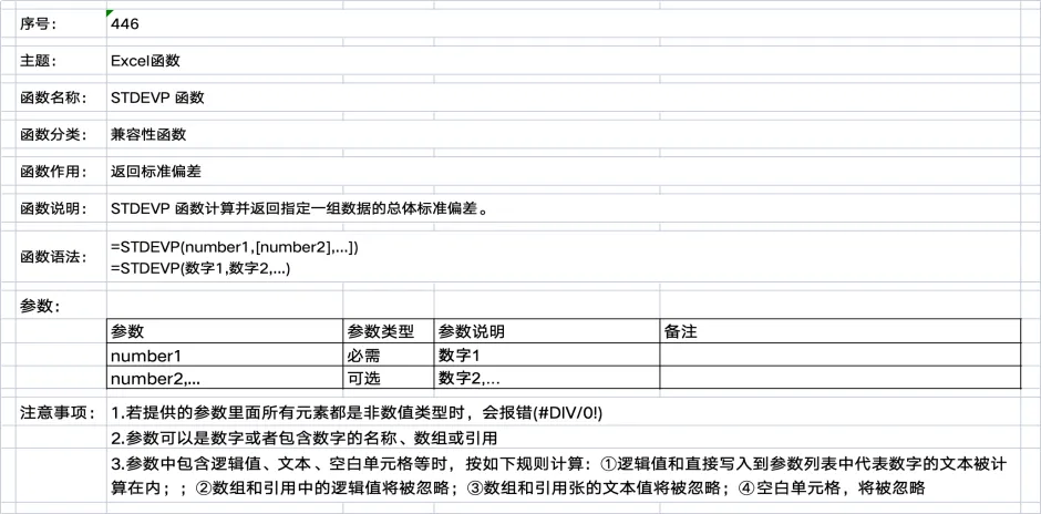 >【Excel 函数】446_STDEVP 函数