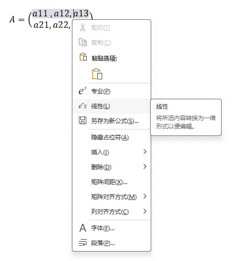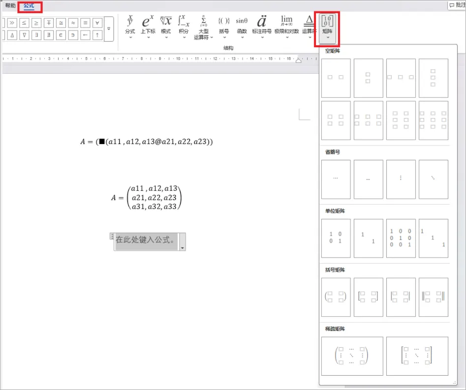 在看文章时,看到人家写的矩阵,这在word中怎么实现?