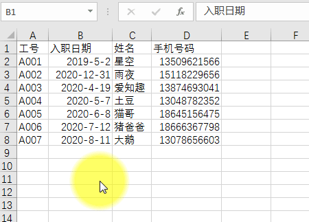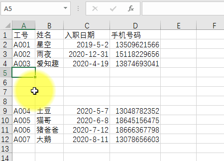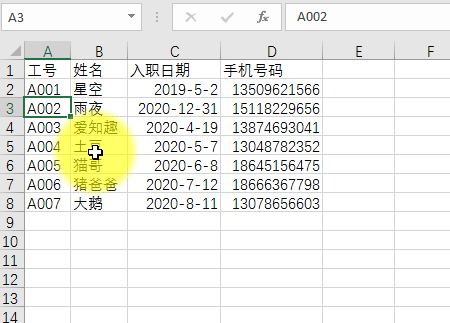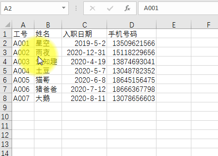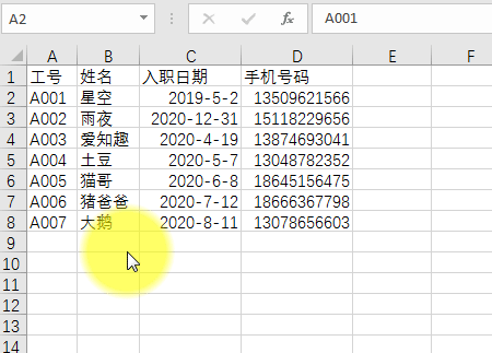 例如:双击A2单元格的右边线,会跳转到D2单元格;双击D2单元格的下边线,会跳转到D8单元格