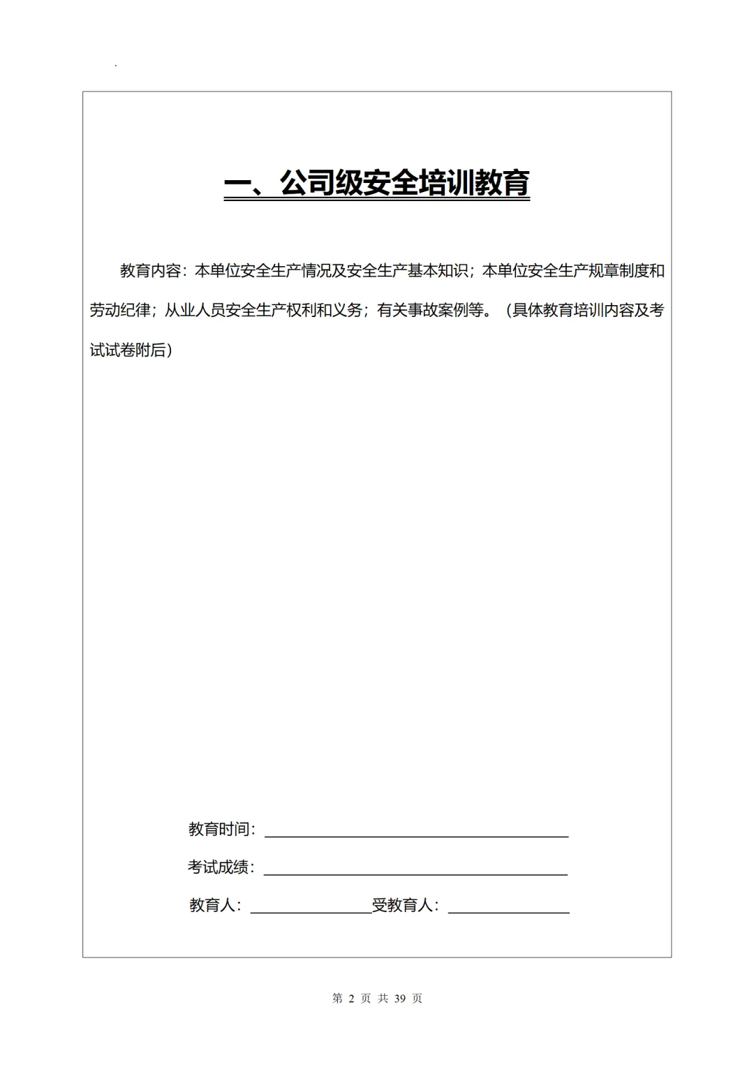 安全培训一人一档word