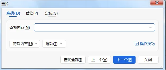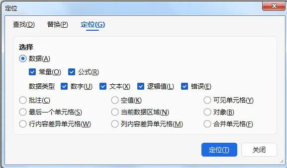 操作:在表格中按下Ctrl+H:查找替换,自动弹出定位对话框