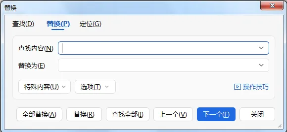 操作:在表格中按下Ctrl+H:查找替换,自动弹出查找替换对话框